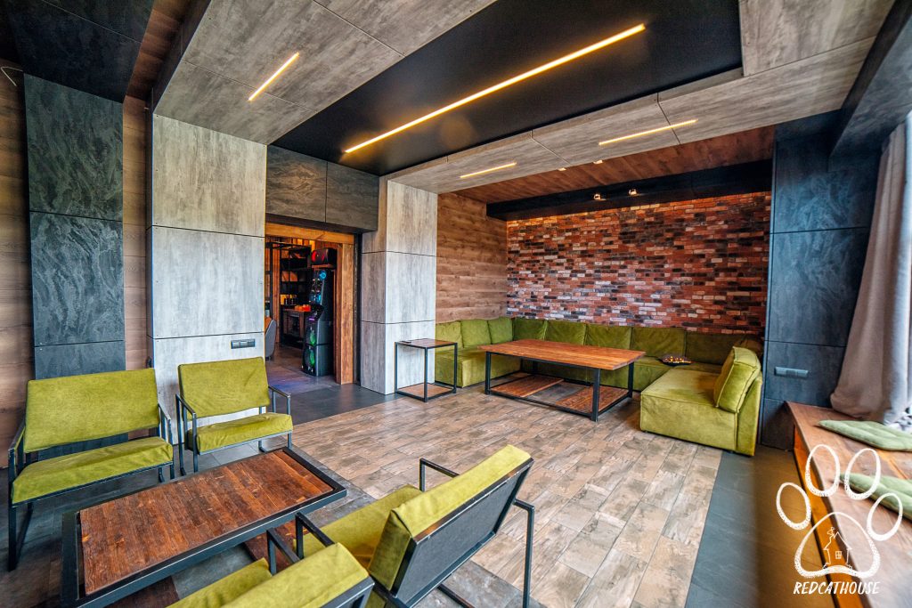 Красный дом может принять до 16 человек: внутри 5 дизайнерских спален в разных стилях (лофт, классика), просторный каминный зал с био-камином для душевных посиделок, диско-зал с профессиональной музыкальной аппаратурой — танцуйте до утра! Мини-кухня (кофемашина, заправленная зерновым кофе, СВЧ, электрочайник, холодильный шкаф, необходимая посуда предоставляется по запросу). VR-room c PS5 не оставит равнодушными ни детей ни взрослых.