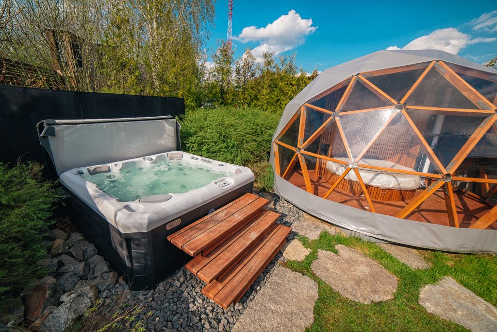 — Джакузи под открытым небом на 6 персон — романтичные вечера под звёздами;